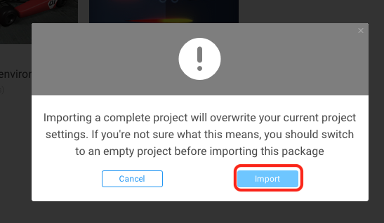 4.警告ウィンドウが表示されるので「Import」をクリックします。