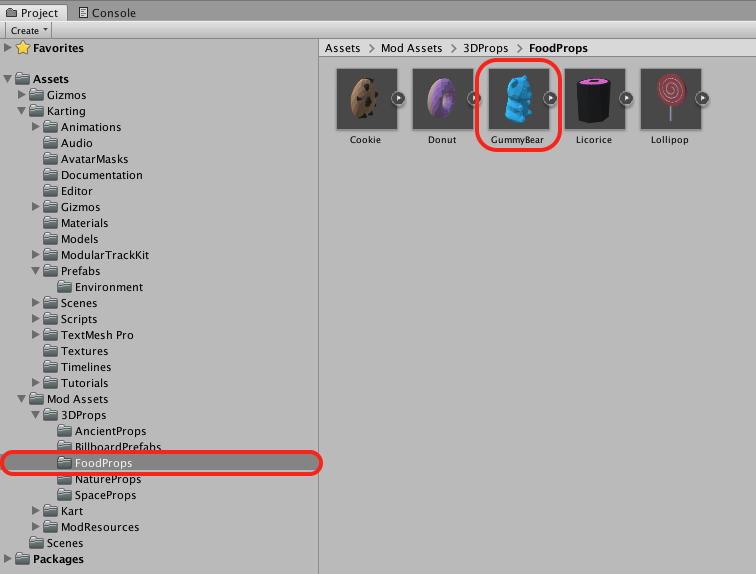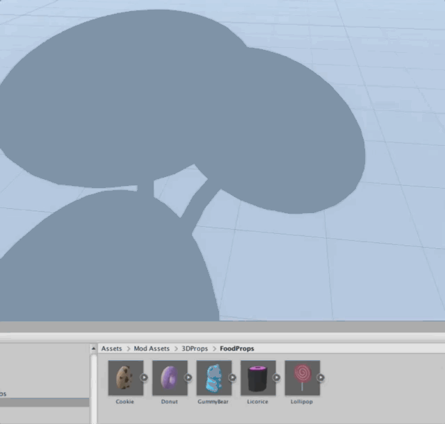 Project(プロジェクト)にあるProject > Assets > Mod Assets > 3DProps > FoodProps を開きます。