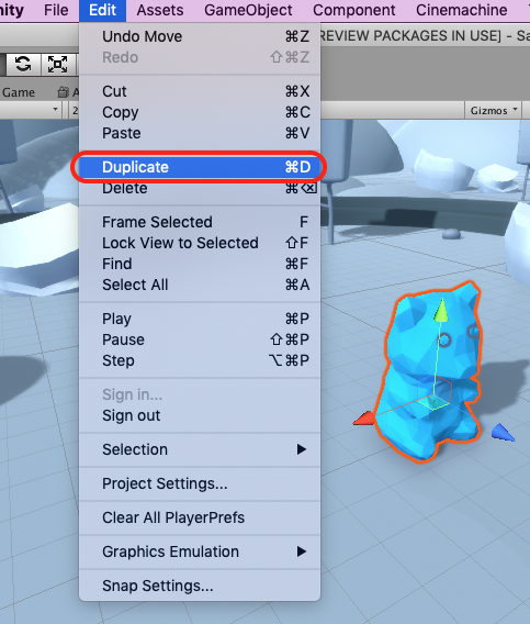 ① Edit > Duplicate (ディプリケイト:複製)
