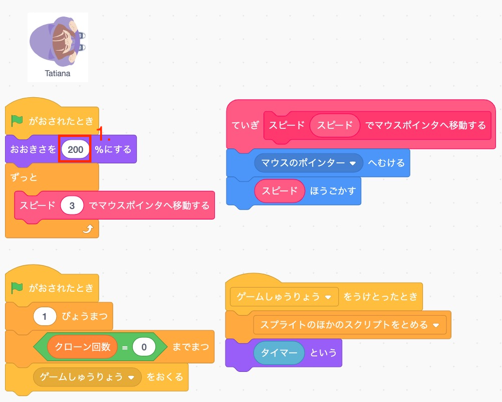 ①タチアナのサイズを小さくする