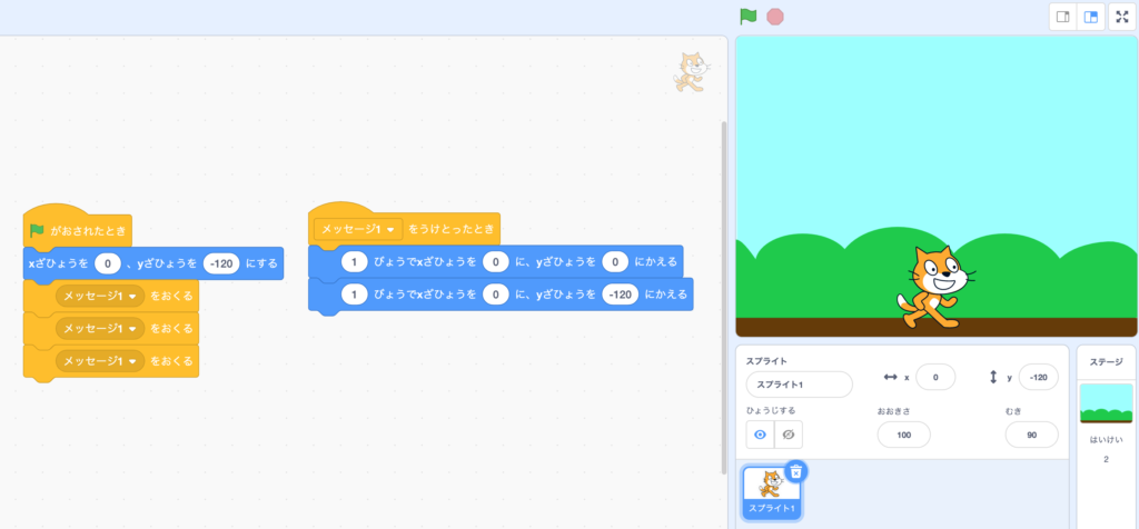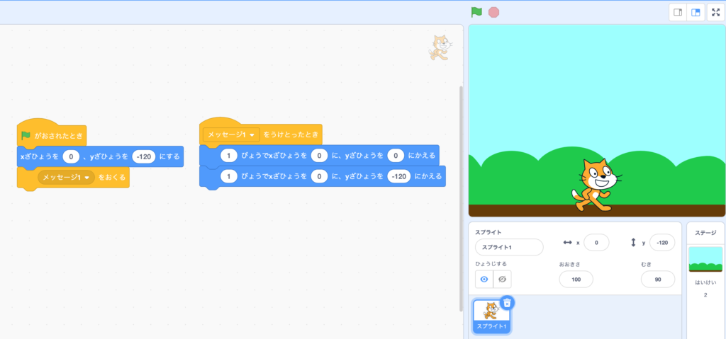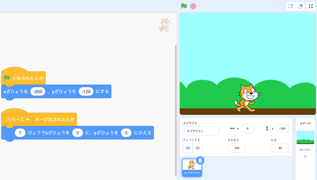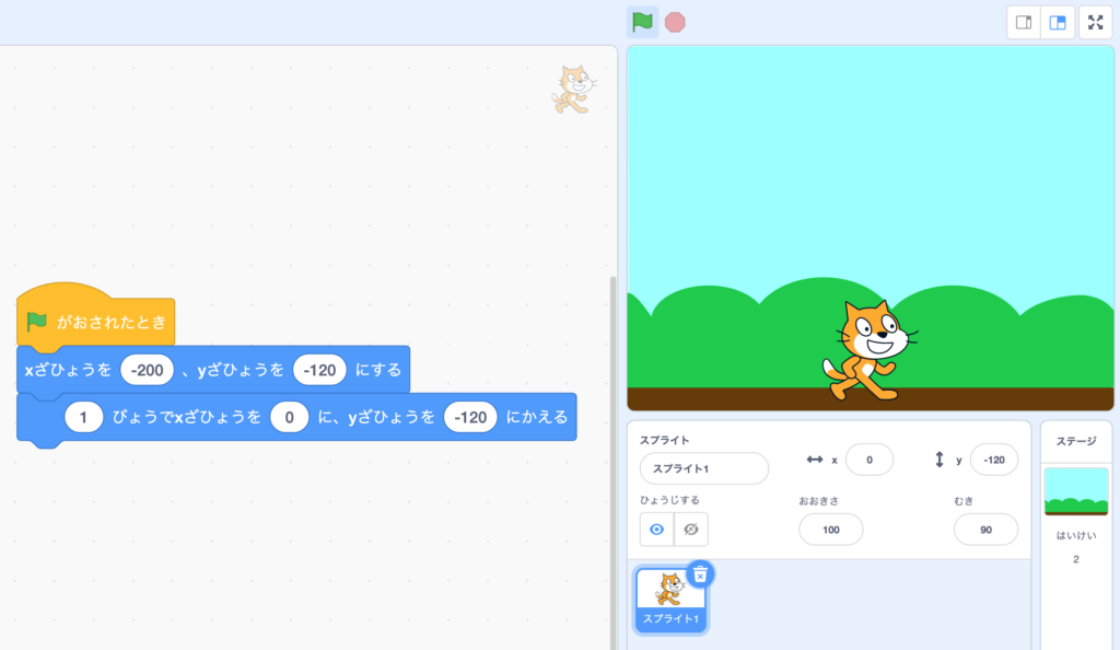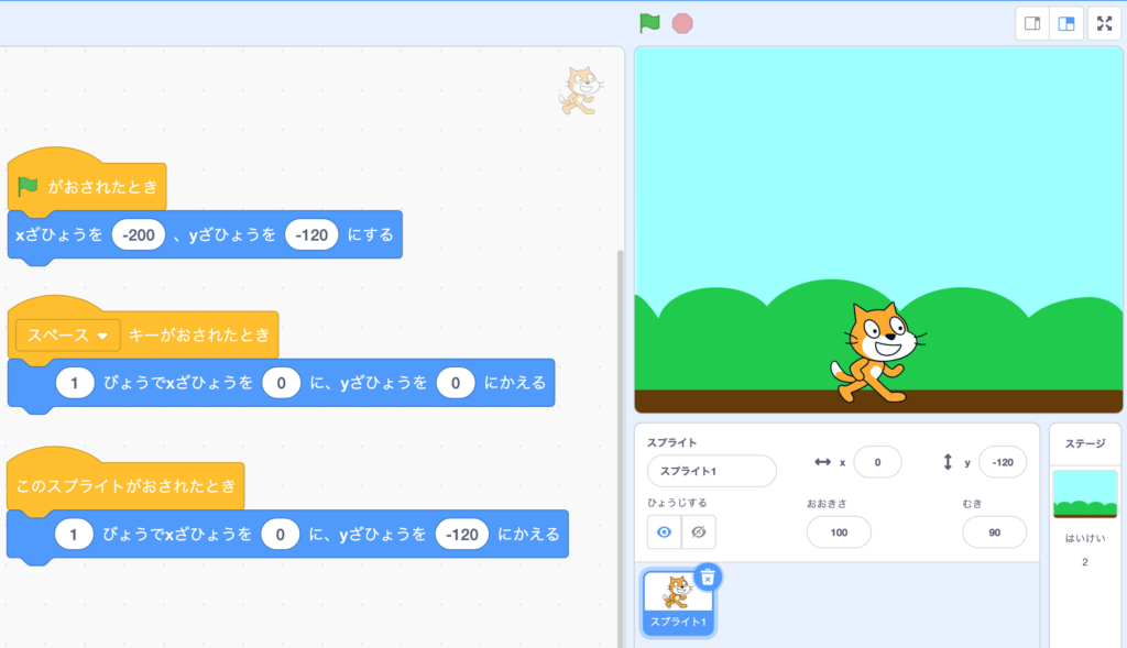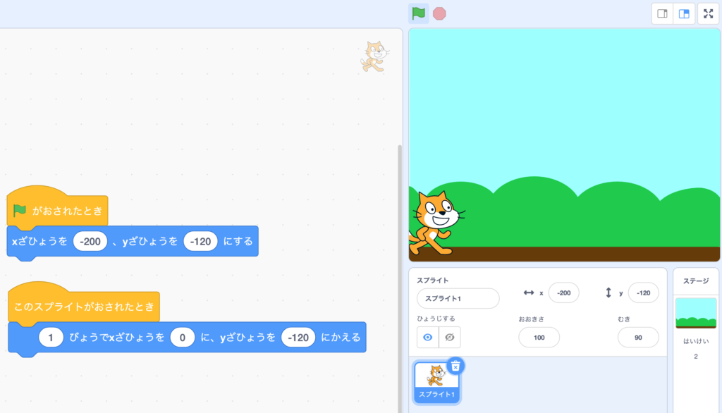 is clicked, the sprite you chose should be on the ground.