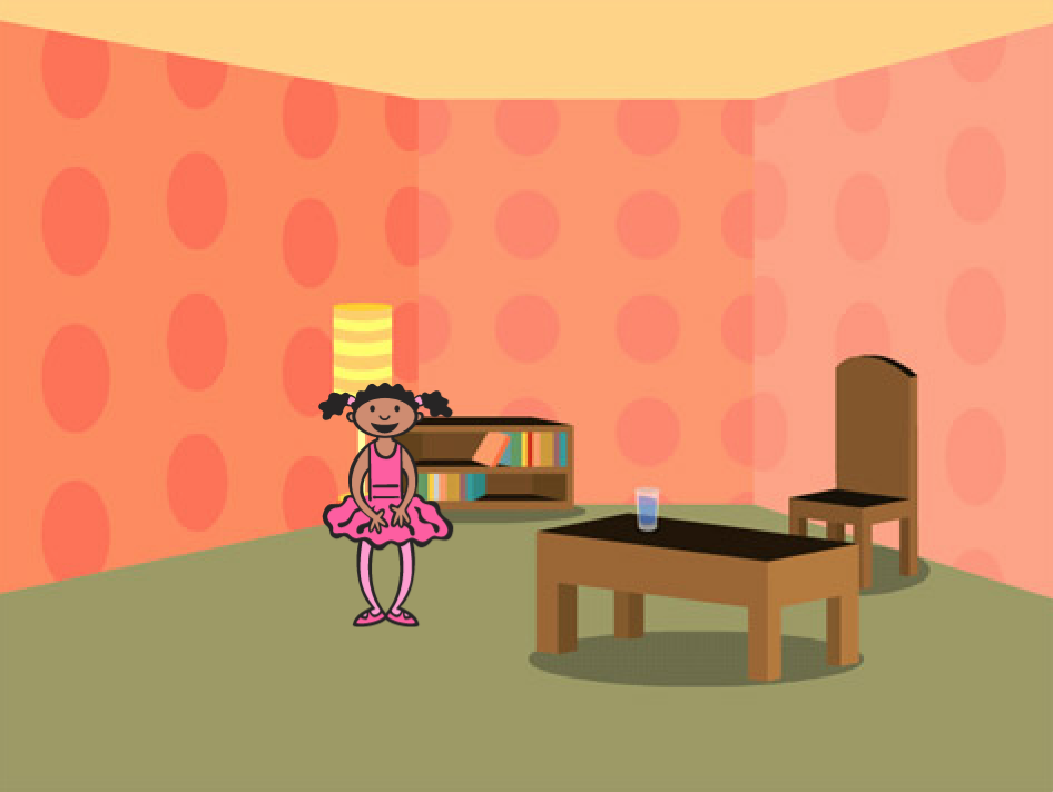 3. When you press “Space” Key, it should be standing on the chair, and jump 4 times up and down.