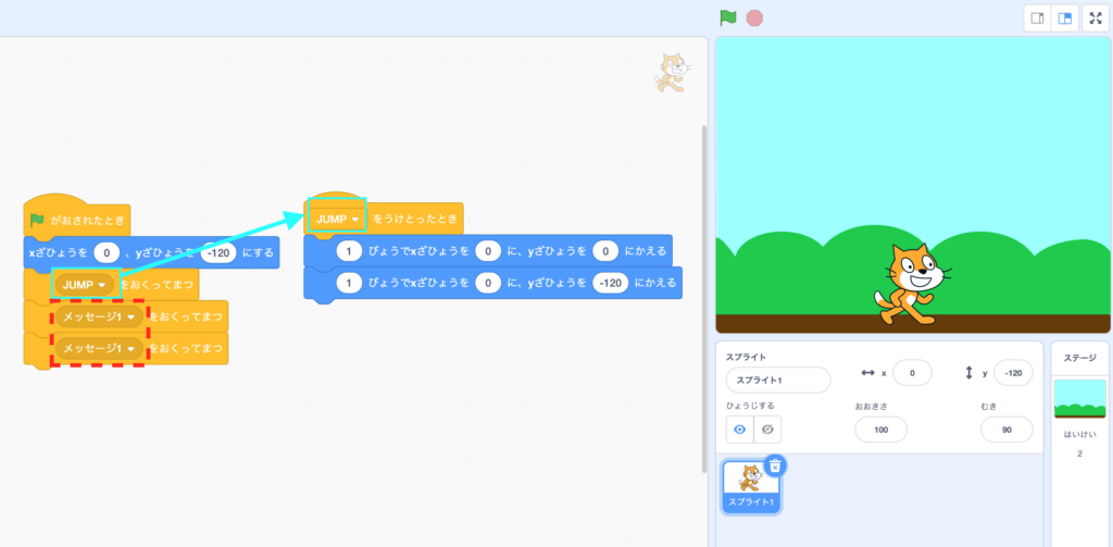 Since “JUMP” is sent only once, the cat will only jump once.