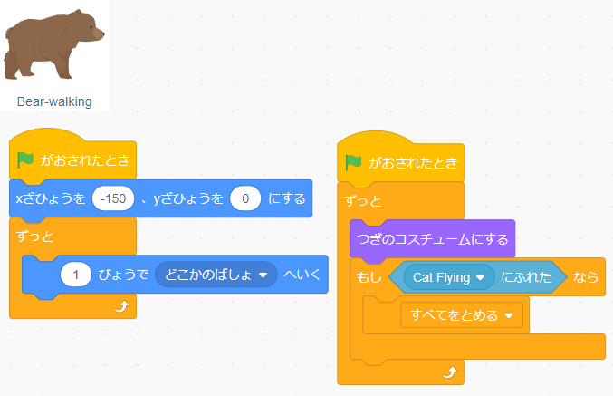 Once the bear touches the cat,