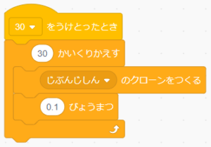will clone 30 times, wait 0.1 second between each clone: