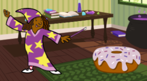 A newbie wizard is trying to turn a donut into a flying hippo.