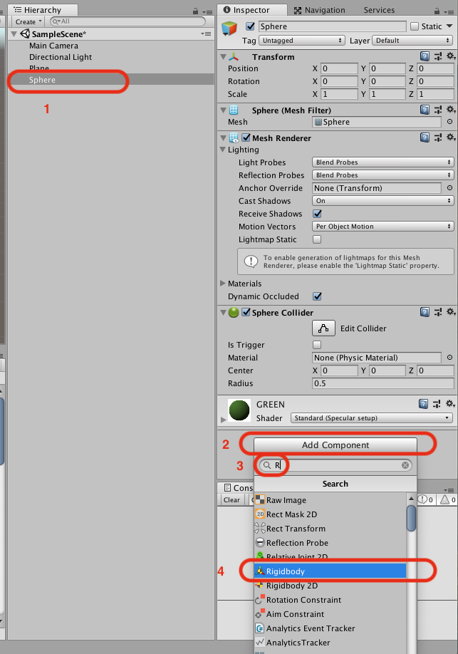 4.こうほにでてくる「Rigidbody」をえらび、くわえます。