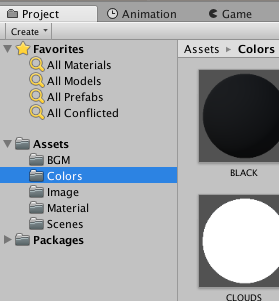 Projectウィンドウ -> Assets -> Colors にたくさんの色があります。