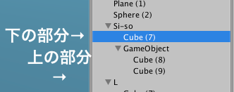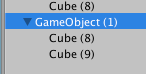 できたGameObjectに2つのCubeをドラッグしていれます。