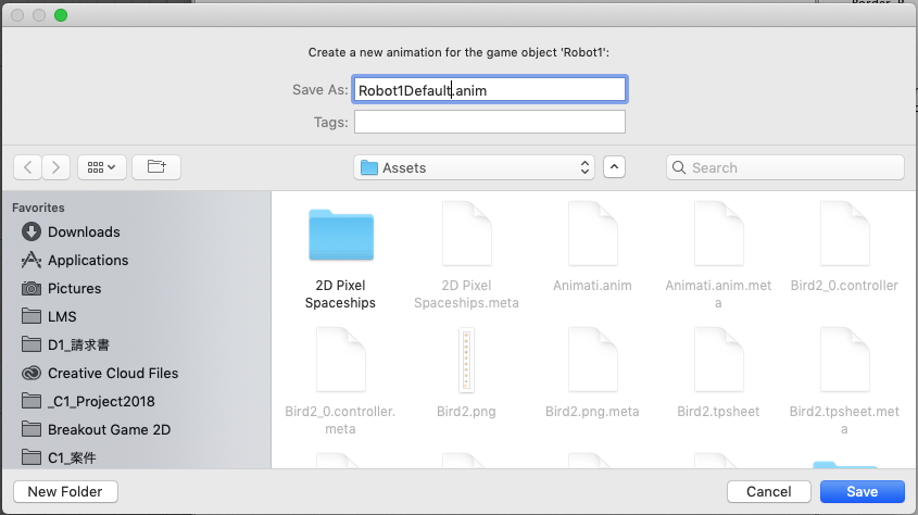 1.スプライトを選んだまま、Animation(アニメーション) ウィンドウを開く