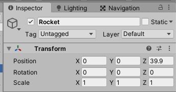 – 新しくRocket ゲームオブジェクトをつくって