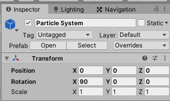 Assets > MyParticle > Particle System をロケットの中にドラッグしよう
