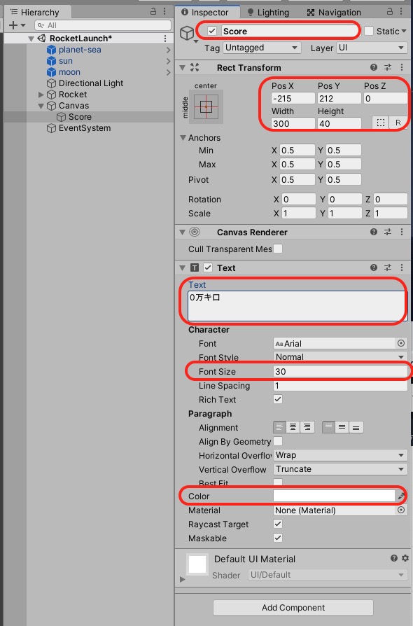 2.UI Text :飛んだ距離を表示するため