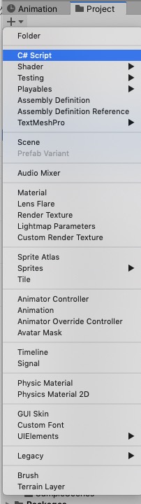 Project画面でスクリプトを作成します。