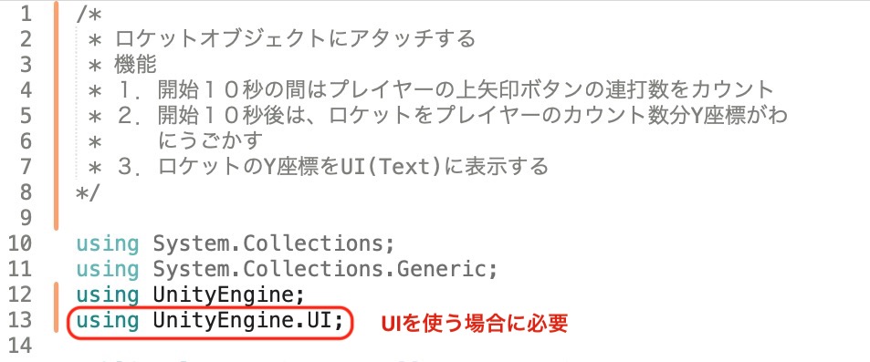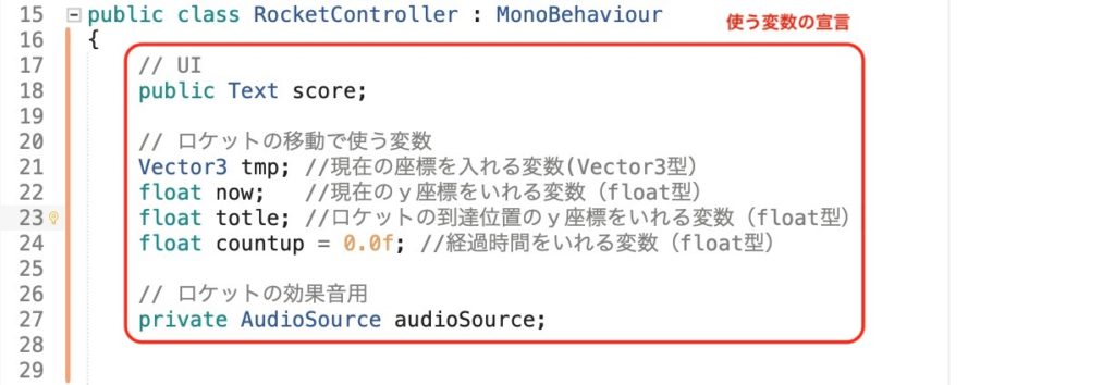 作るのはロケットゲームオブジェクトをコントロールするスクリプトだけだ。
