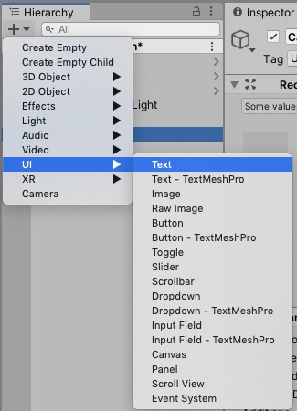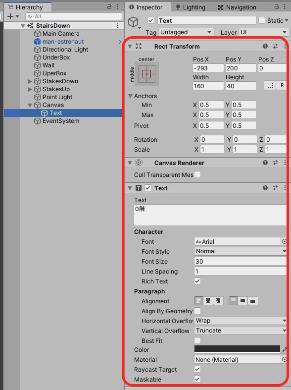 1.Hierarchy > UI > Textをヒエラルキーにアッドしよう