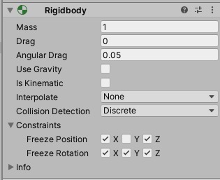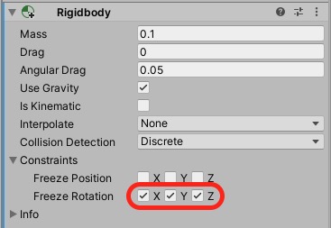 ※キャラクターオブジェクトが回転しないようにConstraints > Freeze Rotation のXYZのすべてにチェックを入れておきましょう。