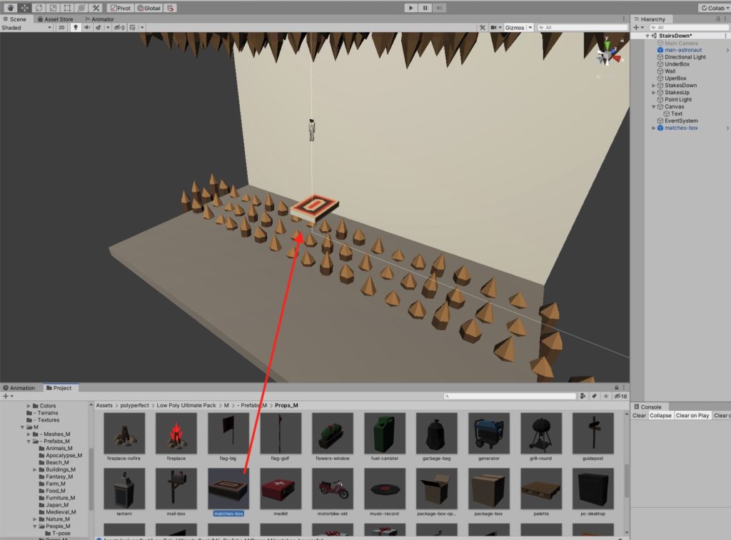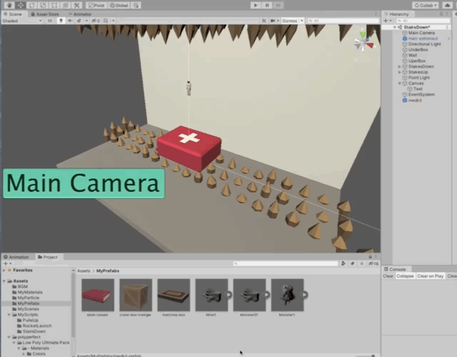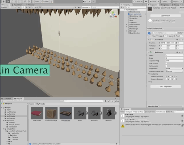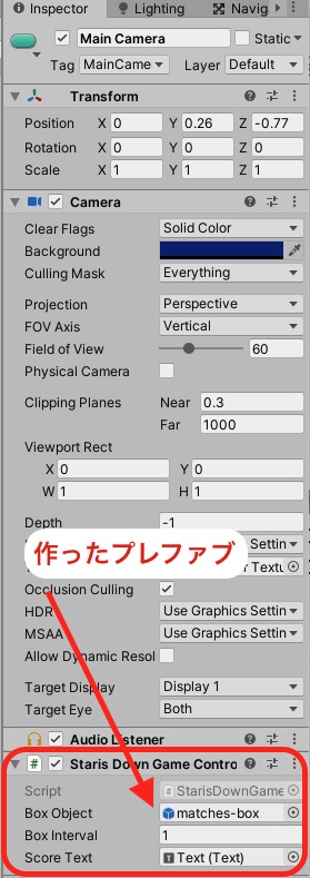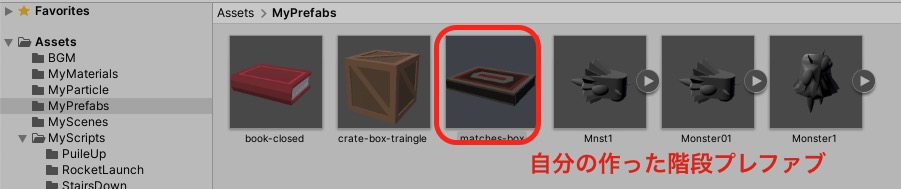 ※階段はプレファブになっているため、Projectにある階段プレファブにプログラムをアタッチします
