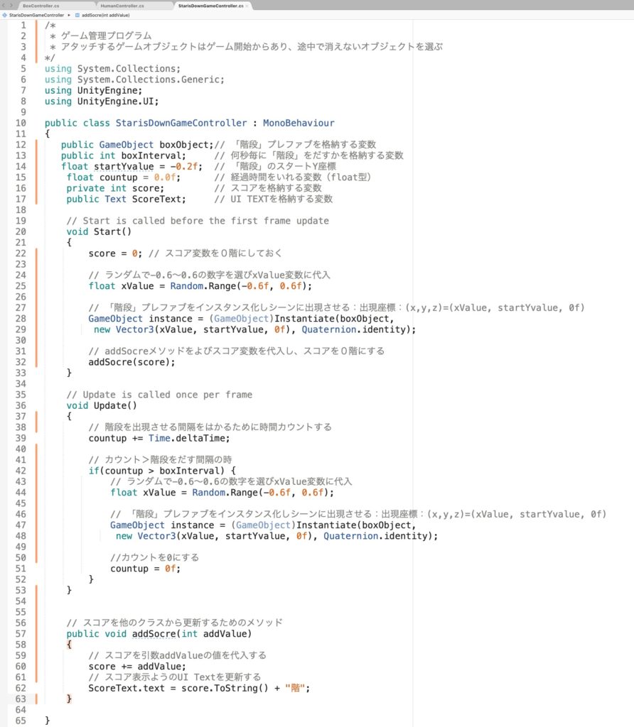 スコア管理したり、階段が出現させたりするプログラムです。