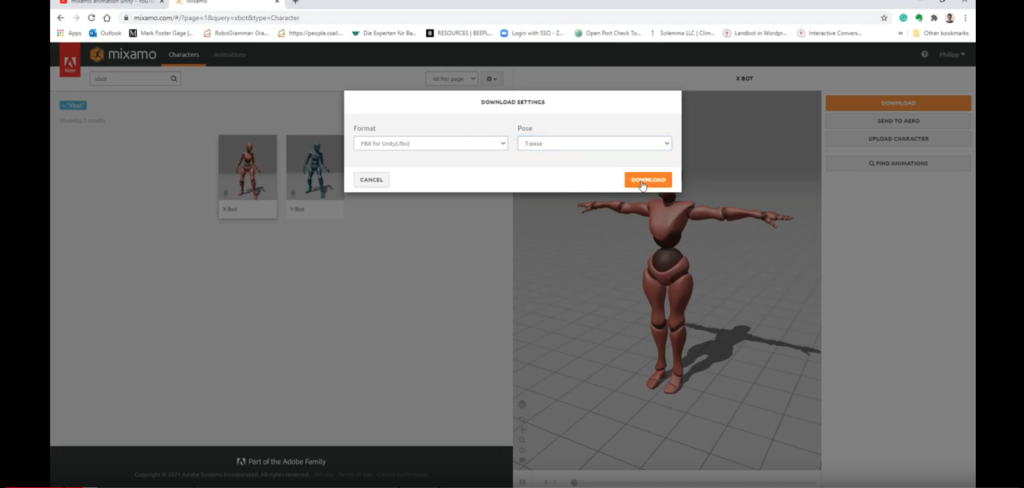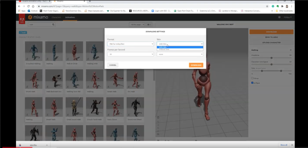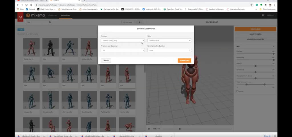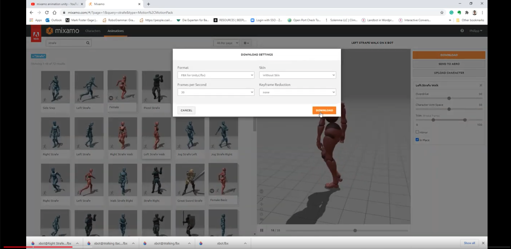2.次に基本的な6種類のアニメーションをダウンロードします。